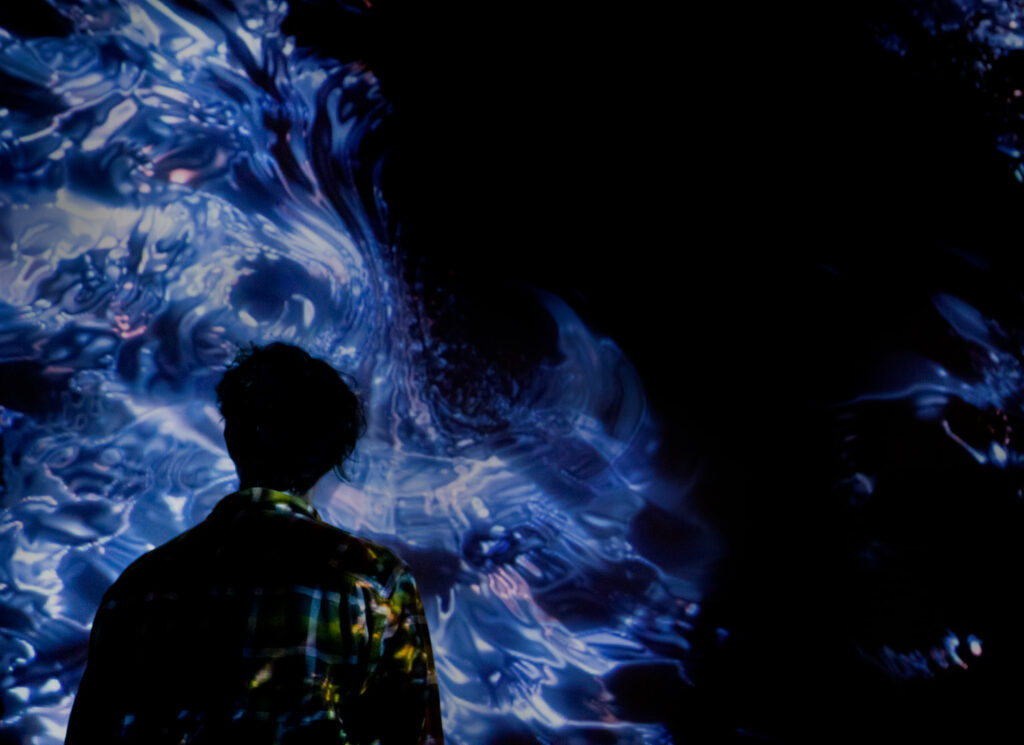 Ahto utilises motion detection technology and a simulation algorithm to produce an ever-changing image and sound. The work can be viewed both from the first floor and from the Light Balcony, which is located on the third floor of the museum.