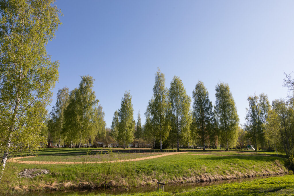 Anna-Lea Kopperi is a visual artist known for her works of environmental and community art. Her Endless Berry Path in Mukkula was created with the participation of local residents. A total of 116 blackcurrant bushes were planted in Merrasoja – the number corresponding to the age of the city of Lahti. The seedlings were planted in a path shaped like the number eight, the symbol of infinity. The community aspect of the work arose from the collaboration with locals from different generations who participated in the planting and shared their experiences. Blackcurrants from Endless Berry Path are edible. The artist hopes that picking blackcurrants and tending the bushes will provide locals with an alternative and accessible way to engage in community activities.