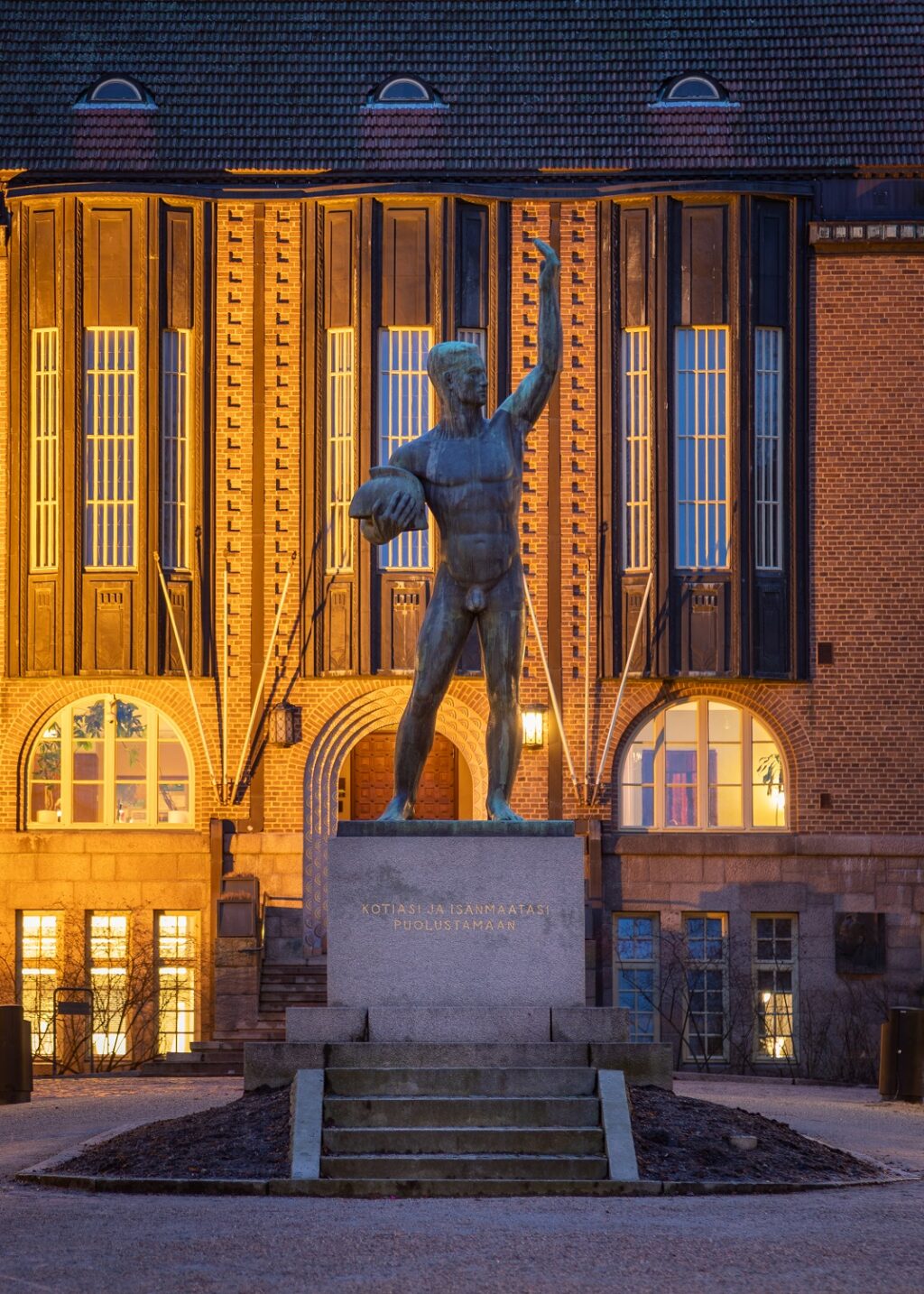 Viktor Jansson’s Statue of Liberty was the first public sculpture in Lahti. Erected in 1920 in front of the town hall, the statue is a tribute to “white” soldiers who died in the 1918 war.