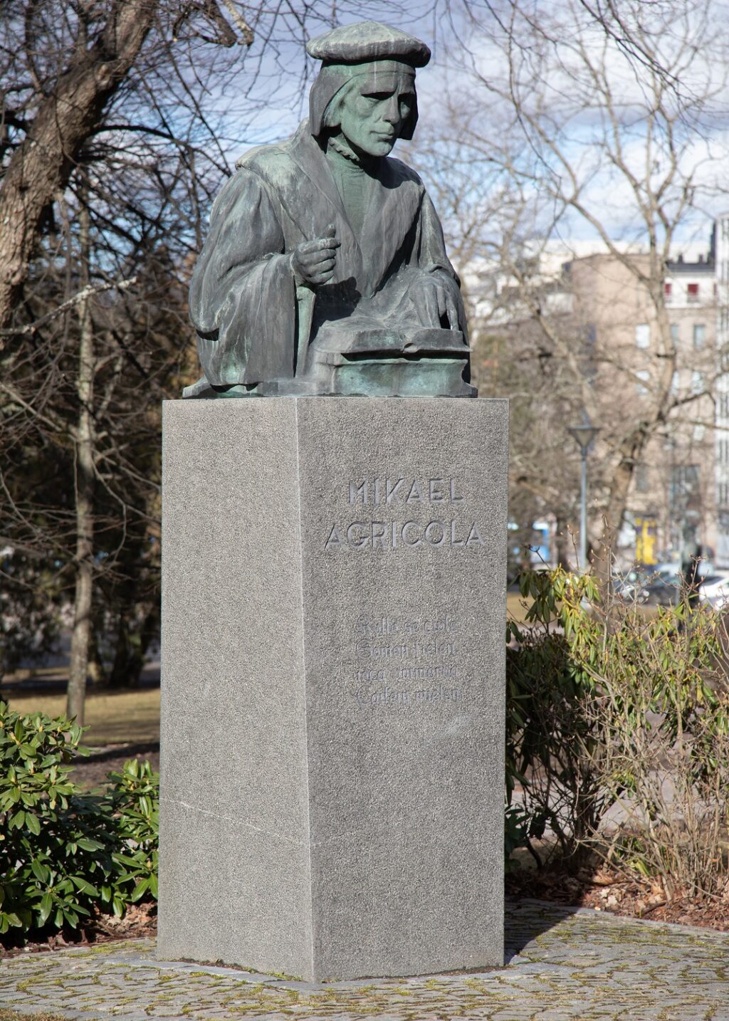 Emil Wikström teki vuonna 1908 Viipuriin muistomerkin Suomen kirjakielen isästä Mikael Agricolasta. Alkuperäinen patsas katosi talvi- ja jatkosodan aikana. Lahden kaupunginhallitus osti vuonna 1950 Wikströmin perikunnalta oikeuden valattaa Viipurissa olleen monumentaalisen patsaan yläosa pronssiin ja tehdä siitä toisinto. Patsas miellettiin kunnianosoitukseksi oman patsaansa menettäneille viipurilaisille sekä hämäläisille äideille, olihan Agricola hämäläisen äidin poika. Patsaan sijoituspaikaksi valittiin Vuorikadun koulun, entisen Lahden kansakoulun edusta.