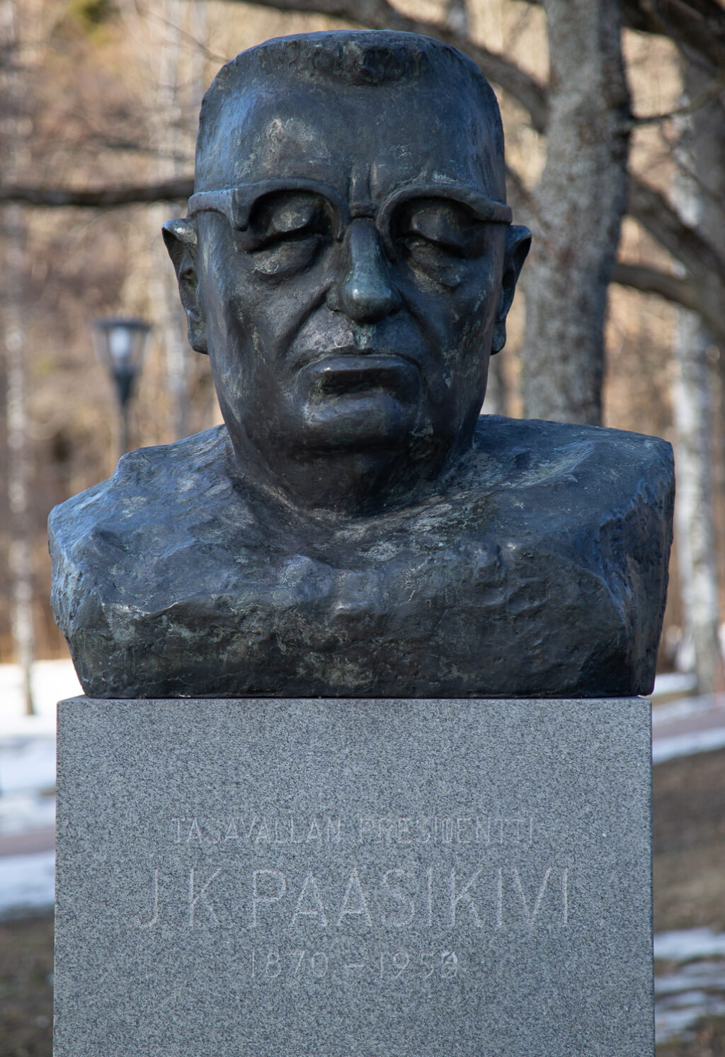 Presidentin rintakuva päätyi kaupungin taidekokoelmaan museo- ja taidelautakunnan ostettua teoksen vuonna 1968. Muotokuva on suunniteltu Lahdessa järjestettyä J. K. Paasikiven patsaskilpailua varten tehdyn Pentti Papinahon luonnoksen pohjalta vuonna 1960. Kilpailun voitti Veikko Leppänen, jonka suunnittelema Paasikiven näköispatsas pystytettiin keskustaan Paasikivenaukiolle. Papinahon presidenttimuotokuva sijoitettiin sen sijaan Mukkulan kartanon puistoon.