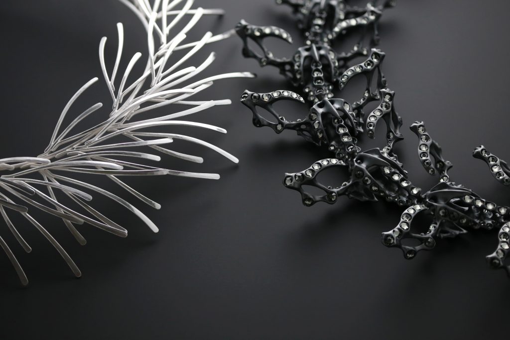 Chao & Eero toteuttavat SAMPLE 1 -korunäyttelyn. Näyttelyssä on esillä kolme korua.