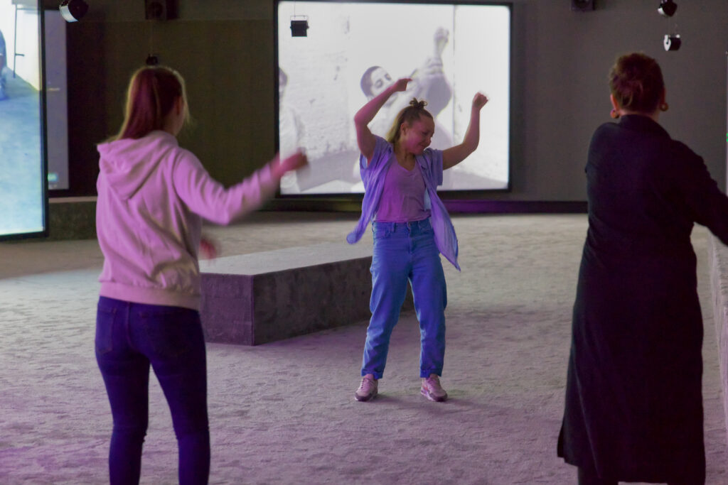 Tule kokemaan Jeremy Shaw: Jaksoton järjestelmä -teoskokonaisuus itse liikkuen ja teoksen rytmiin eläytyen tanssitaiteilija Leena Keizerin johdolla.